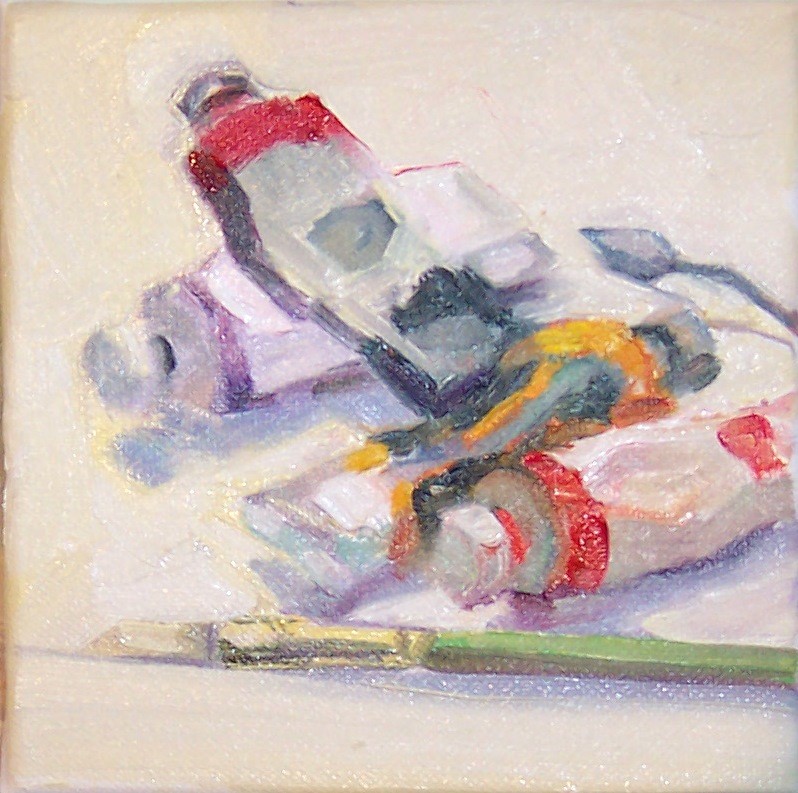 A pill of my oil paints on the table.