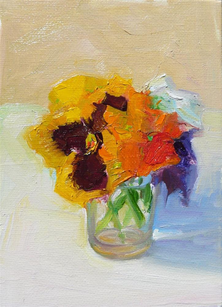 A little glass of lovely pansies.