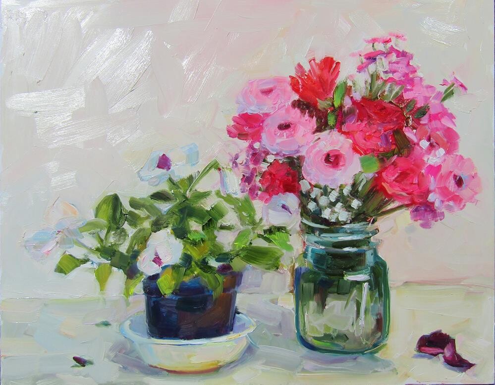 Pansy plant and mixed flower bouquet,