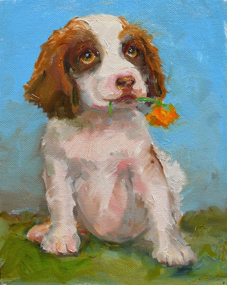 OK, another pansy painting. But I added a pup. I think you can eat pansies without harm.
