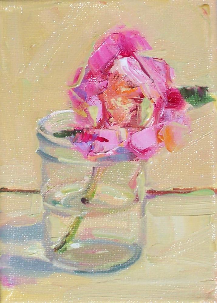 Pink Flower in jar,still life,oil on canvas,7x5,price$1...