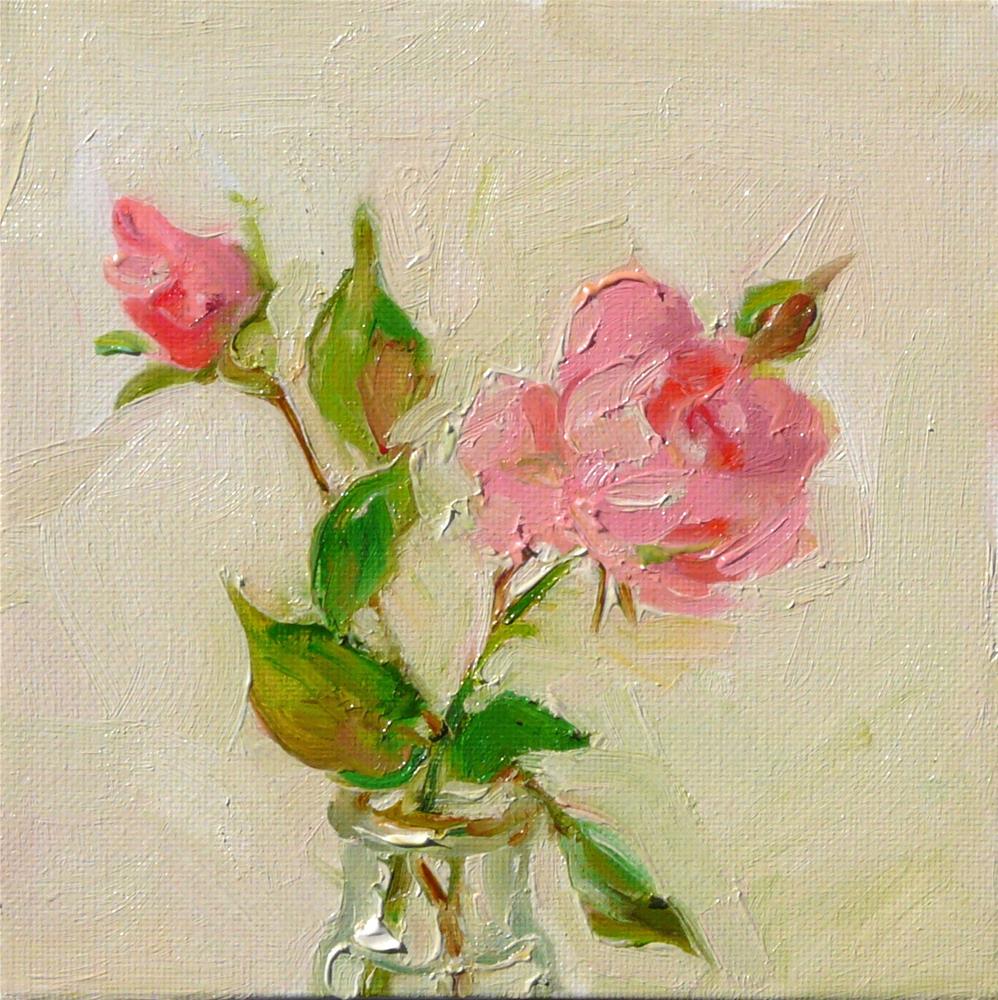 Pink roses in glass vase.