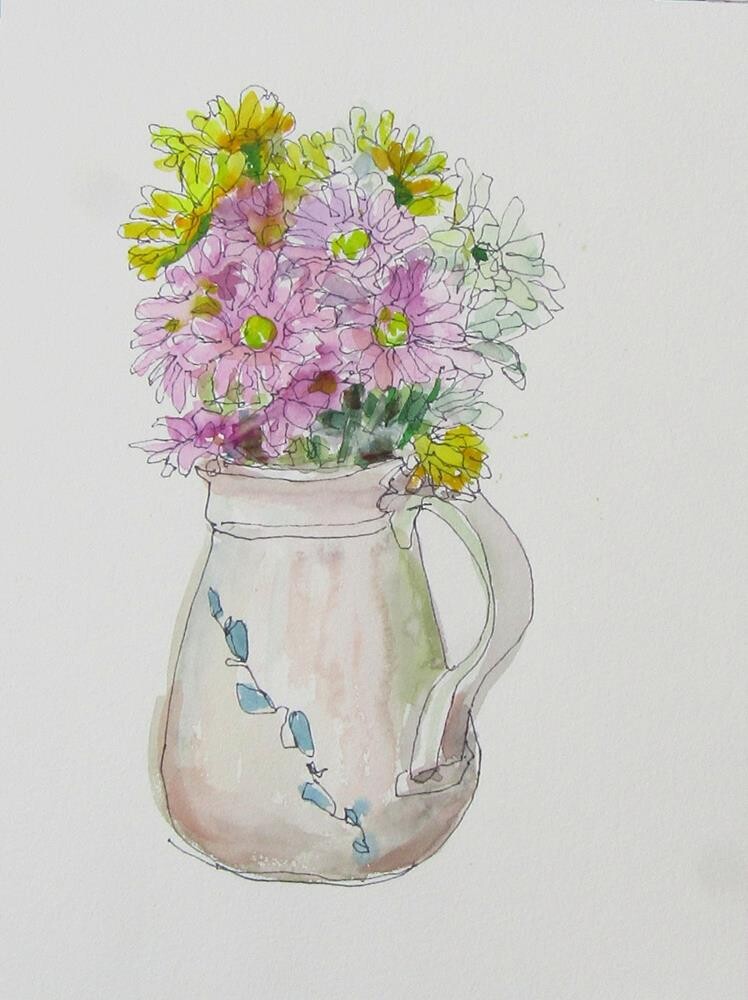 Today I drew with a sharpie first,then I painted. Still having fun watercoloring while my old dog naps.