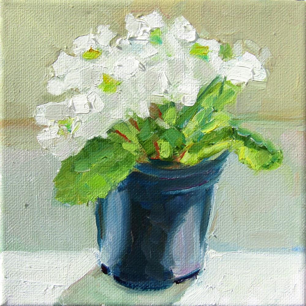 We has a sunny day here. So I painted the primrose plant in the sunlight coming through the window.