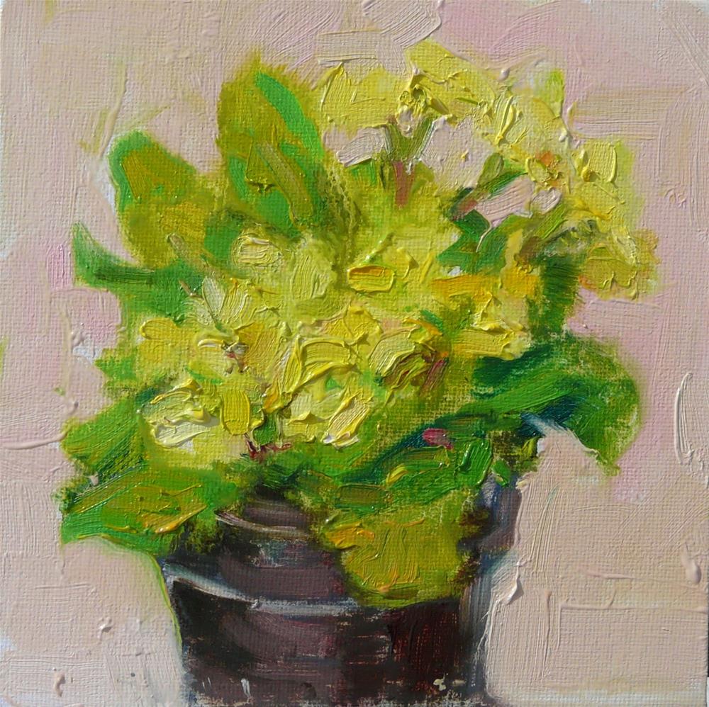 This is one of the four primrose plants that I brought home the other day. I like to paint bright colored flowers.