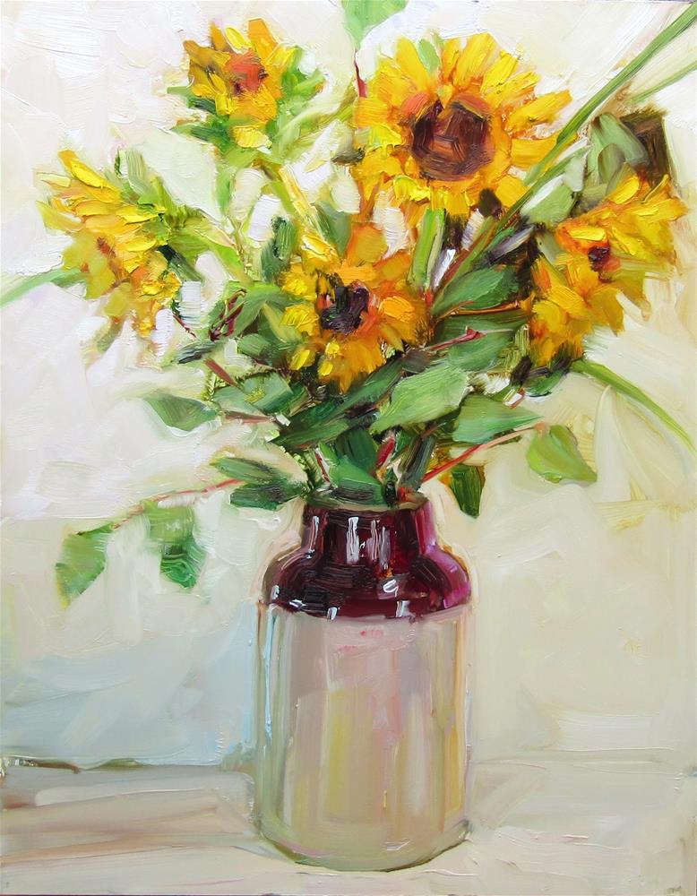 Same sunflowers as in Yesterday's painting. A little smaller in size. I gave Yesterday's pears away to neighbors. Same sunflowers as in Yesterday's painting. A little smaller in size. I gave Yesterday's pears away to neighbors. |