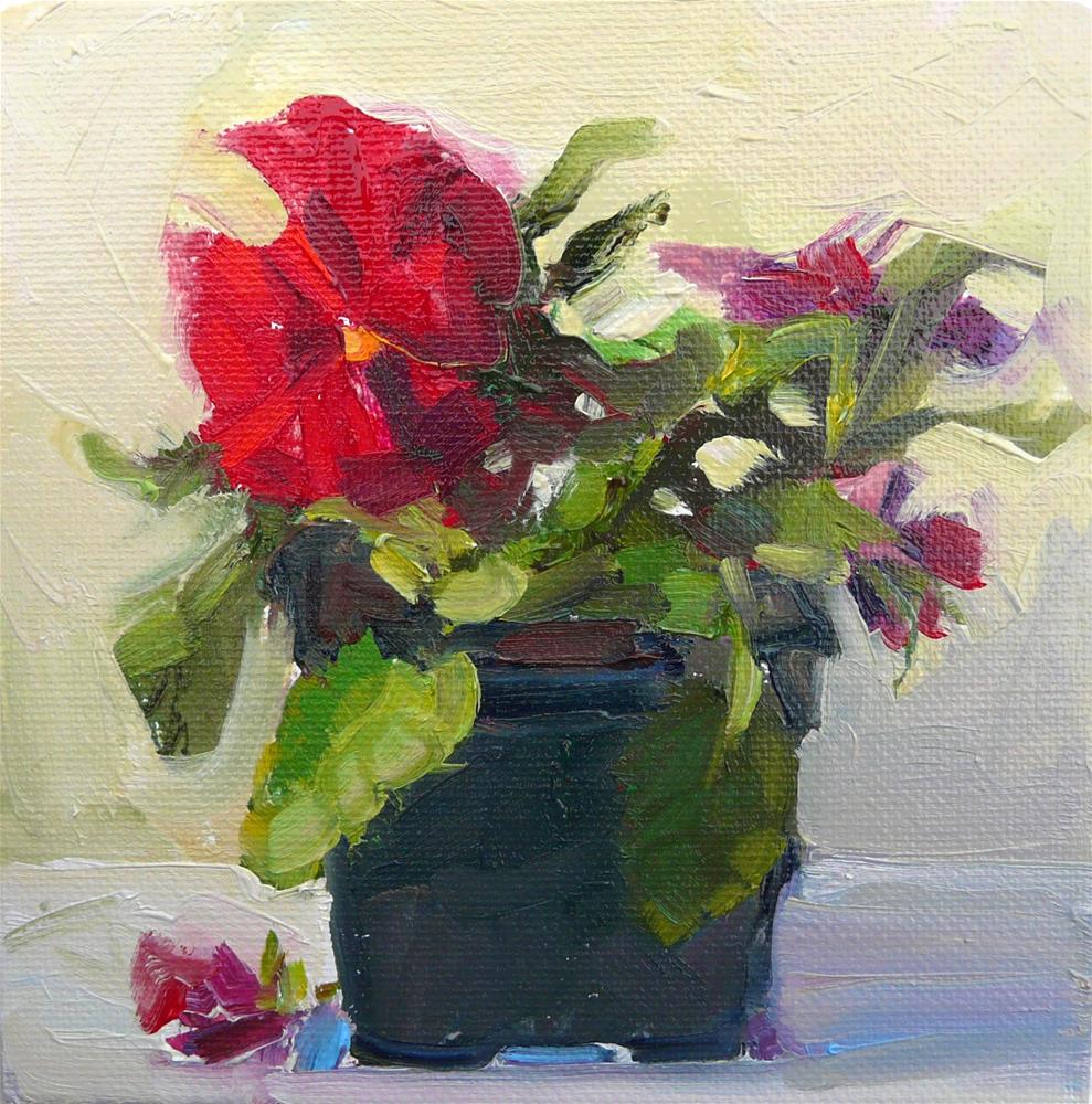 A pretty potted pansy for a rainy day.