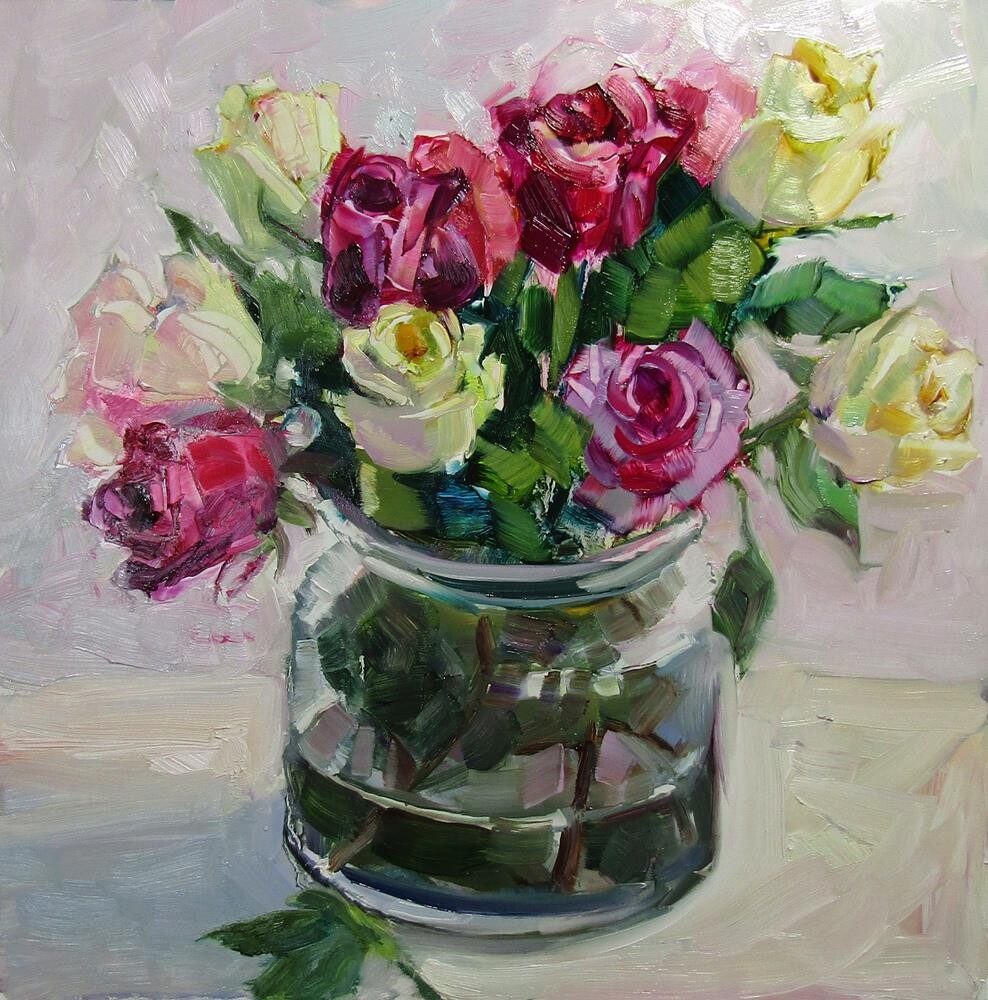 A pretty mix of different colored roses