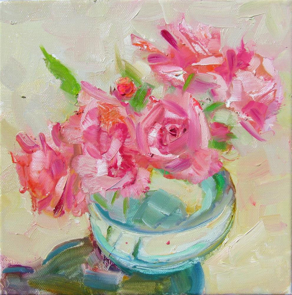 I had a little problem with my models not holding still. The roses moved as well as the sun. But the painting is finished.
