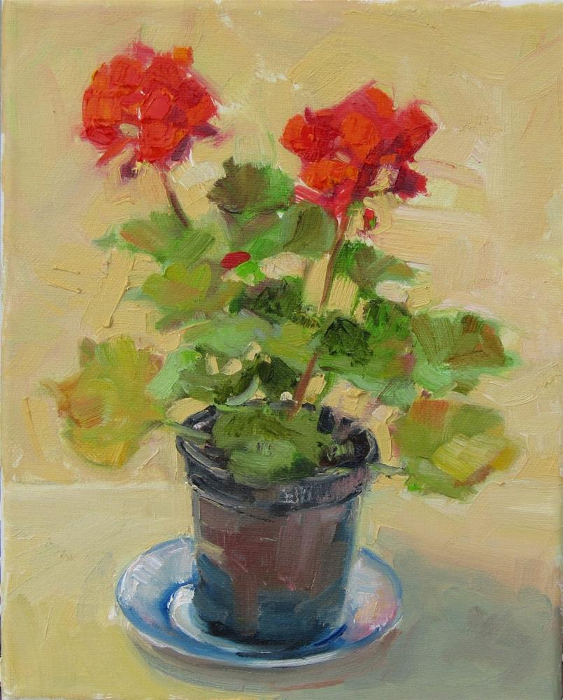 Another painting of the same geranium that I painted the other day. This painting was done under indoor lighting.