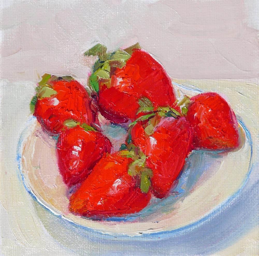Today's painting is of fresh strawberries. Painted with brush and palette knife.