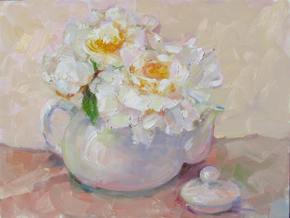 Today's painting. White peonies in white teapot.