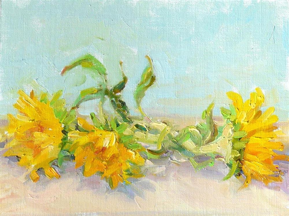 I really love this sunflower painting. So I'm putting it up again. I'm still setting up my studio walls for my open Studio Tour in a couple of weeks.