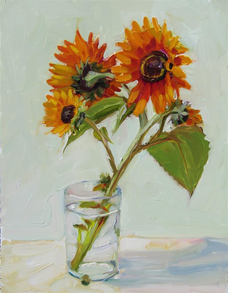 Same sunflowers today in a new painting. I had to cut off the biggest flower for it was looking too sad.