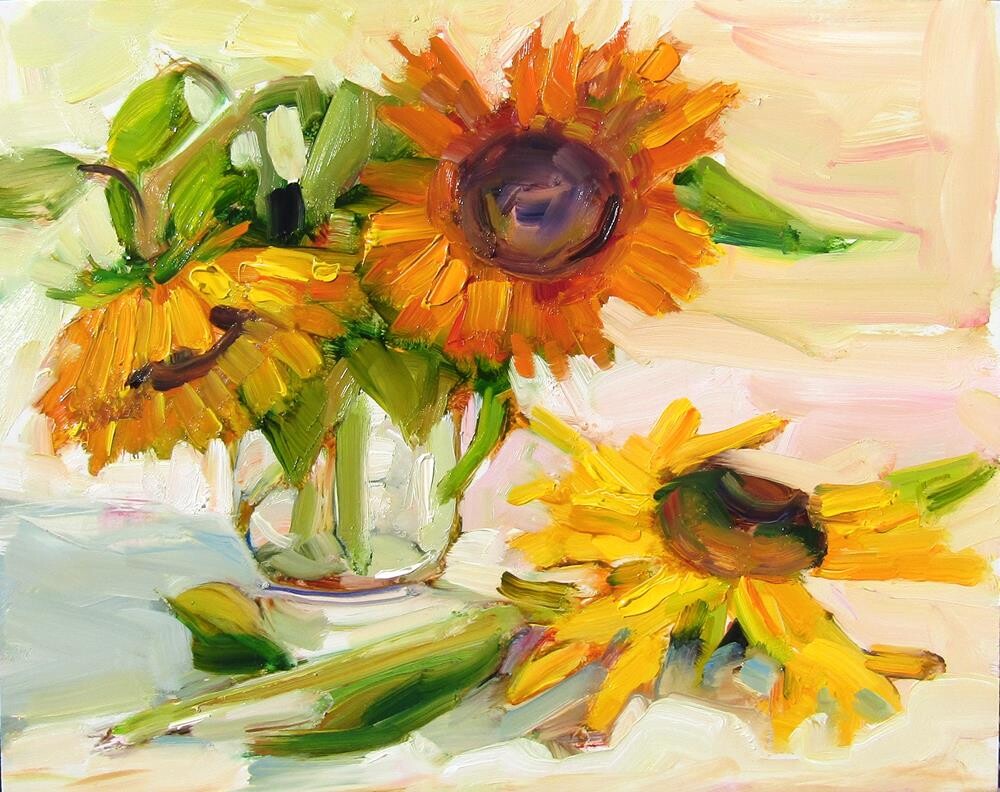 A squirrel broke many of the sunflowers. So I painted some of the ones that broke today.