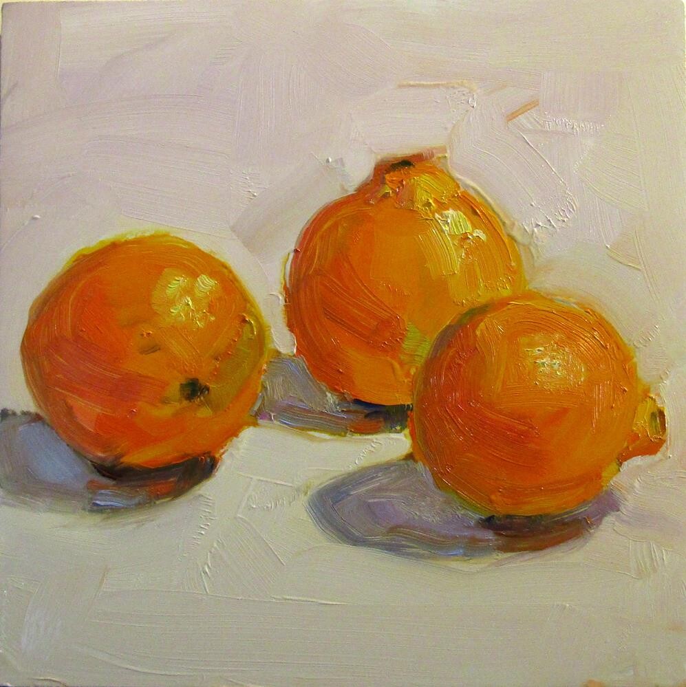 Three oranges that my water aerobic instructor was handing out after class.