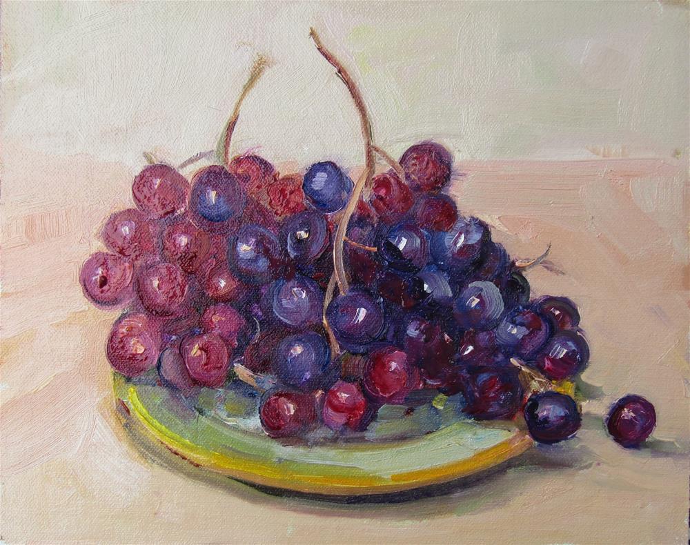 My son ordered grapes from Whole Foods. They were so pretty when they arrived, I had to paint them before they were eaten. They are on our Spanish plates.