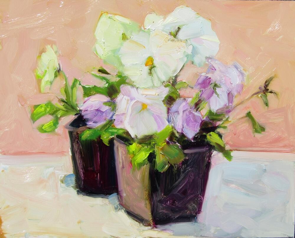 My pansies were looking better. So I painted them again. They were looking very sad for a while after all of our rain.