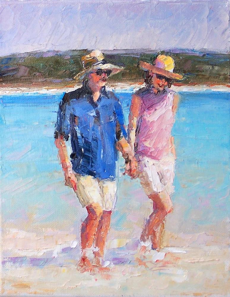 A painting of a couple relaxing on vacation.