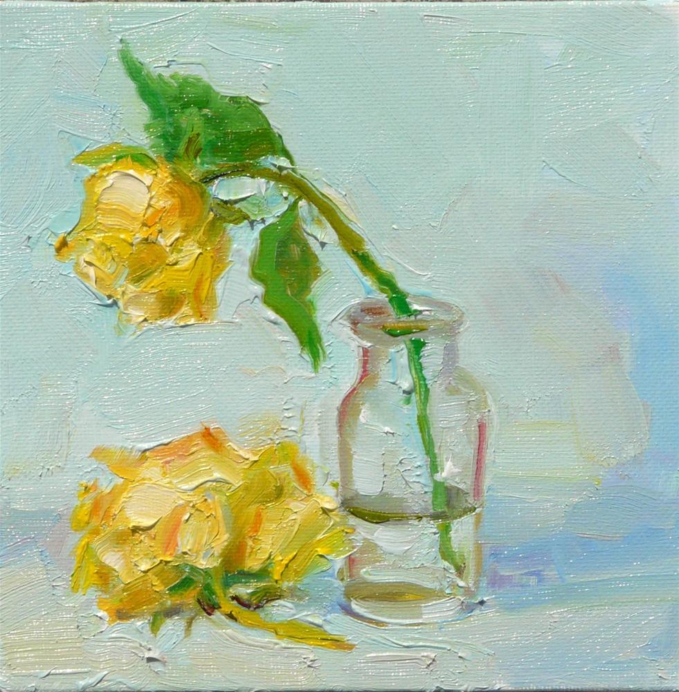 A painting of yellow roses,