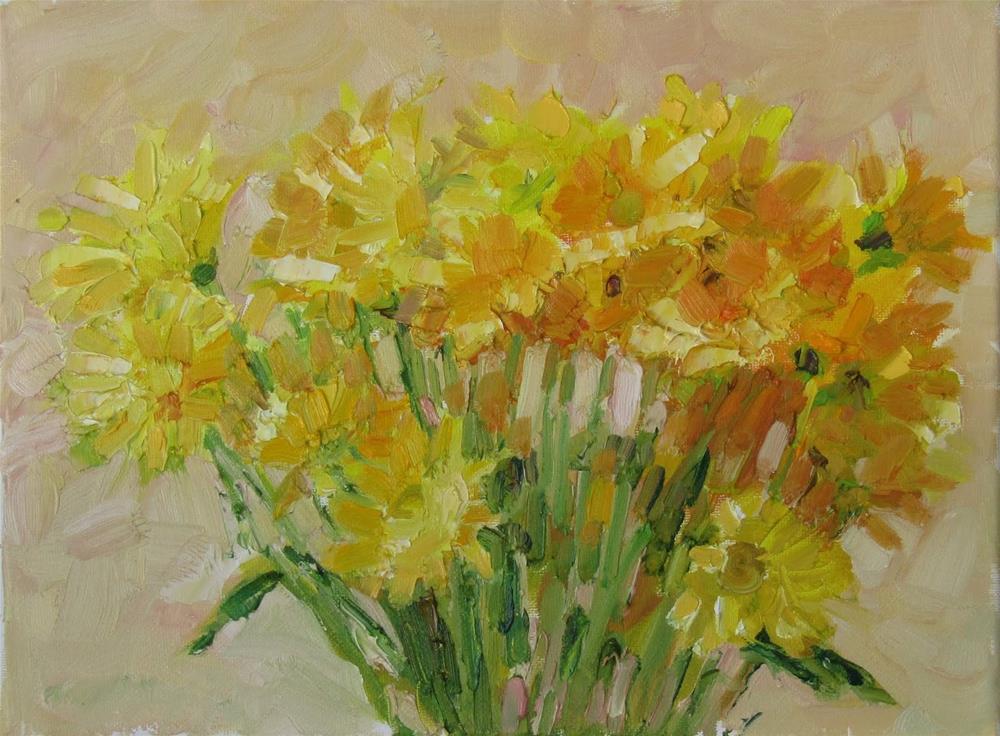 A painting of yellow fall flowers.