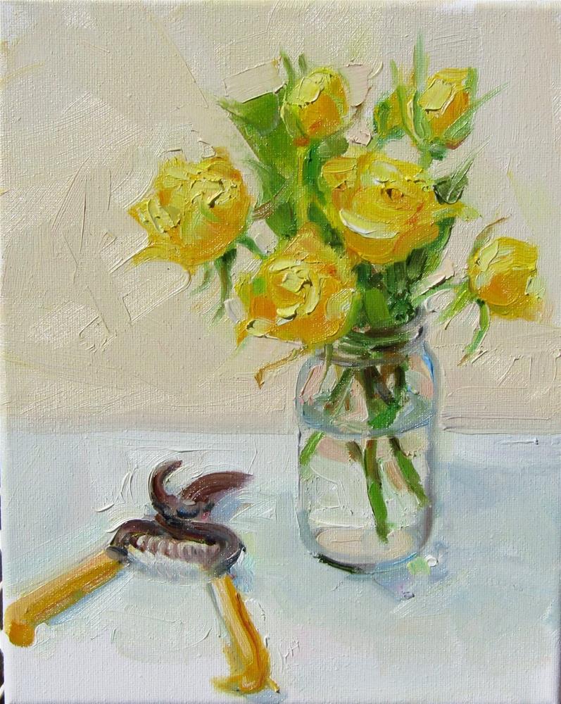 A painting of fresh cut beautiful yellow roses.