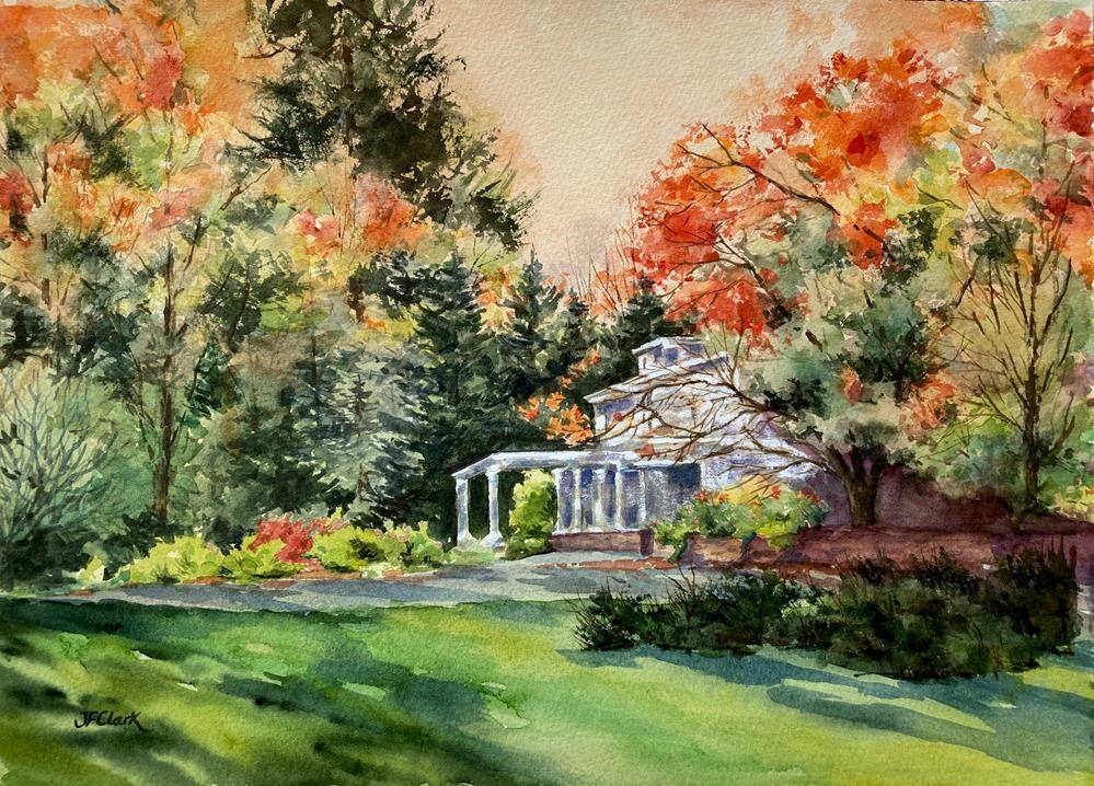 In 2023, when smoke from Canadian wildfires reached New England, the daytime sky took on an orange tint, lending a weird vibe to late summer/early fall scenes. This painting was juried into the Rhode Island Watercolor Society's 2024 online show, "Forces of Nature."