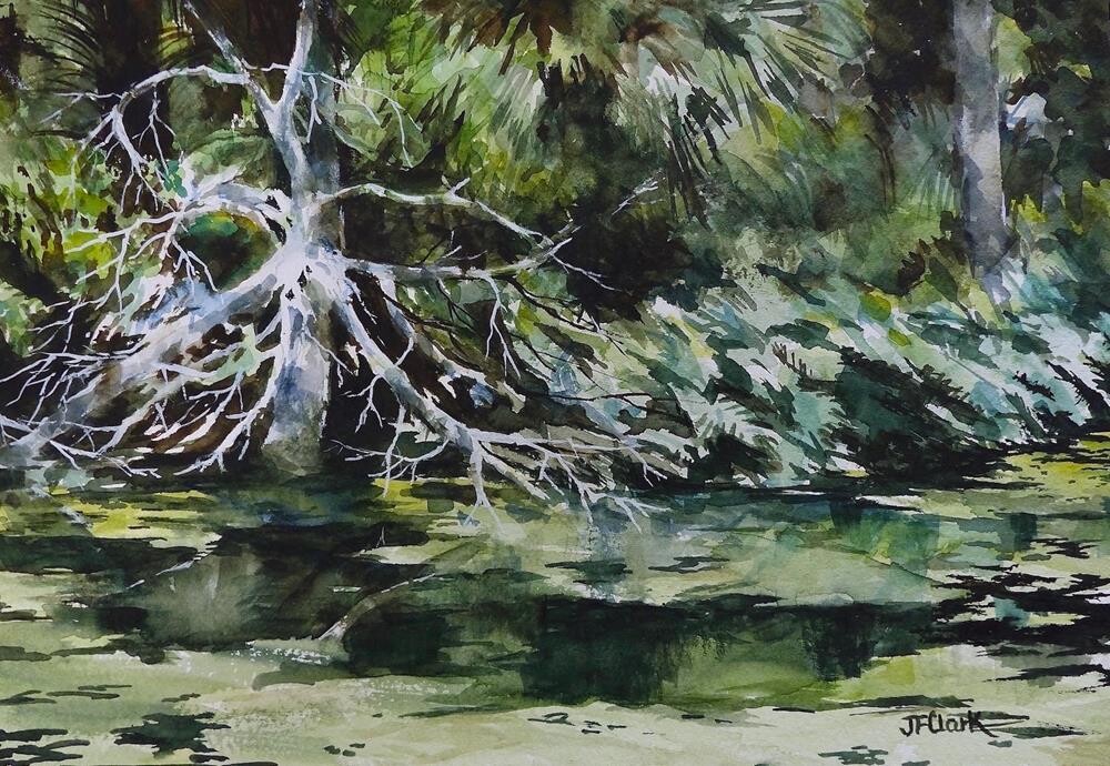 Media: transparent watercolor, matted & framed