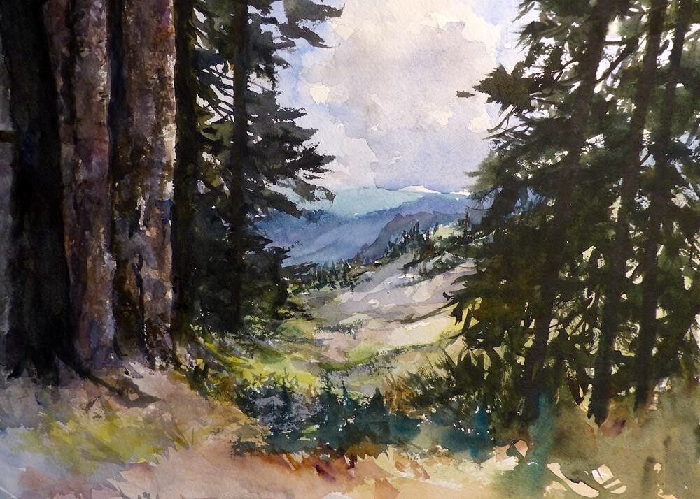 Media: transparent watercolor, framed