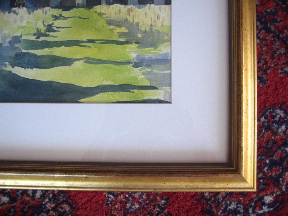 Media: transparent watercolor. white mat, gold wood frame.