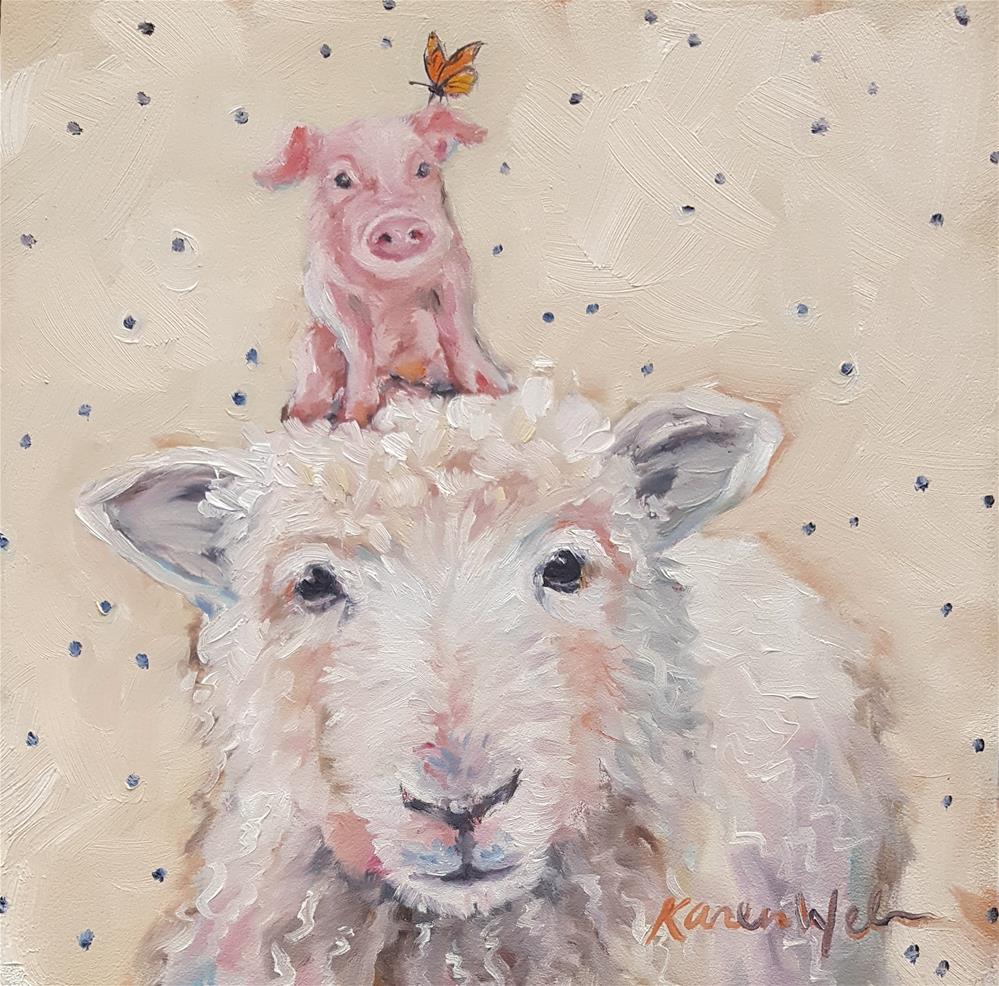 If you have seen my artwork, you know I like to stack animals on top of each other. I've never painted a ewe before, but when I saw this sweet face, I had to paint her. Her expression just speaks Love to me, hence the title.