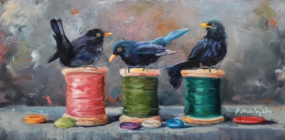 Another view of my grandmother's sewing notions, this one with some friendly blackbirds surveying the scene.. Another view of my grandmother's sewing notions, this one with some friendly blackbirds surveying the scene.. |