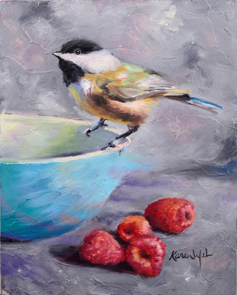 Chickadees are joyful little birds, and raspberries are sweet.. Sweetness and Joy is a painting symbolizing both of these qualities that make life wonderful. Chickadees are joyful little birds, and raspberries are sweet.. Sweetness and Joy is a painting symbolizing both of these qualities that make life wonderful. |