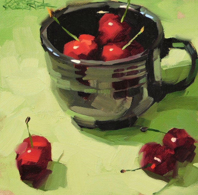 Painted from life in the studio. Much better in person, as the deep alizarin crimson in the shadow sides of the cherries doesn't photograph well. Your satisfaction is guaranteed when you purchase. Feel free to see my return policy. Painted from life in the studio. Much better in person, as the deep alizarin crimson in the shadow sides of the cherries doesn't photograph well. Your satisfaction is guaranteed when you purchase. Feel free to see my return policy. |