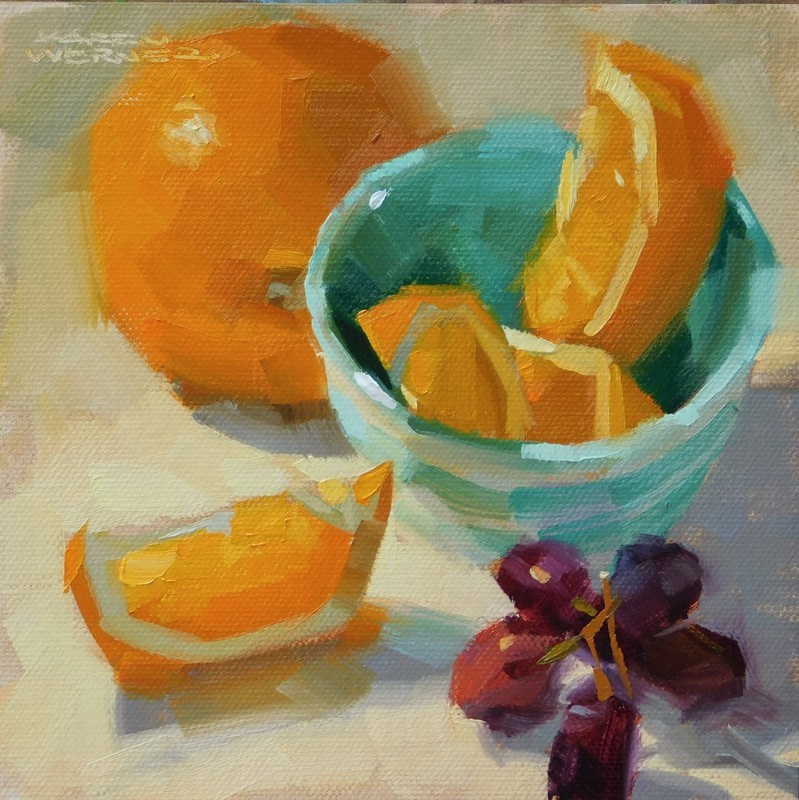 Painted from life in the studio. A simple contemporary floater frame is available to add you your purchase if you like. Just email me at karenwernerart@gmail.com |