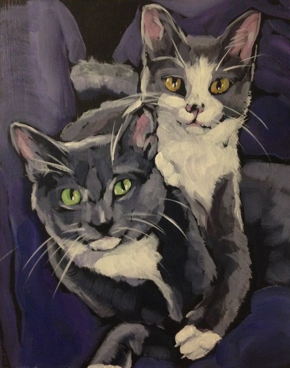 This is Maverick and Cleo, for Carrie~ When I saw this photo I knew I wanted to try to paint it! What a pair~ you can't make that kind of affection up, you know. And so I painted it in a rectangle because there's no way I would've wanted to have to crop anything out!