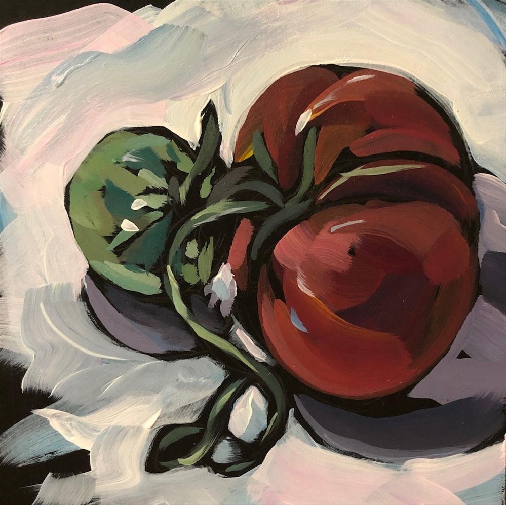 I've been teaching in my alley driveway for this fall's session of Paint Love, and I am so glad I decided to give it a go. I need to have these mature, creative, fun-loving, kind and generous adults to hang out with and talk art with at least once a week. And all the struggles to figure out technology to include my Zoom people is hard and brain-busting, but their patience and their paintings are so rewarding. I look forward to our classes all week! Today we painted tomatoes because there were some lovely ripe ones in the garden, and we talked about and practiced the concept of One-Color-Per-Stroke, which is a way to make sure you are looking closely at what you are doing, paying attention to every stroke and how you are placing it onto the panel. This was NOT my demo, because I don't like that one. I did this one later as everyone else was working and I like it! I've been teaching in my alley driveway for this fall's session of Paint Love, and I am so glad I decided to give it a go. I need to have these mature, creative, fun-loving, kind and generous adults to hang out with and talk art with at least once a week. And all the struggles to figure out technology to include my Zoom people is hard and brain-busting, but their patience and their paintings are so rewarding. I look forward to our classes all week! Today we painted tomatoes because there were some lovely ripe ones in the garden, and we talked about and practiced the concept of One-Color-Per-Stroke, which is a way to make sure you are looking closely at what you are doing, paying attention to every stroke and how you are placing it onto the panel. This was NOT my demo, because I don't like that one. I did this one later as everyone else was working and I like it! |