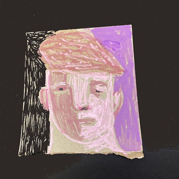Media: Pen and Ink Oil paint marker on chipboard
