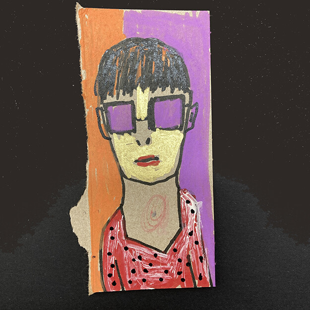 Media: Pen and Ink Oil paint markers on thin cardboard/chipboard