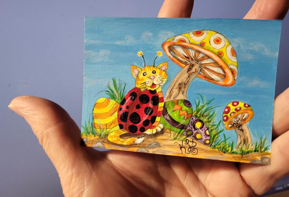 Cat-A-Bug's been busy decorating and hiding Easter eggs amongst the mushrooms. She invites everyone to come to her Easter Egg hunt! She is my newest ACEO titled 'Hiding Easter Eggs.' Cat-A-Bug's been busy decorating and hiding Easter eggs amongst the mushrooms. She invites everyone to come to her Easter Egg hunt! She is my newest ACEO titled 'Hiding Easter Eggs.' |