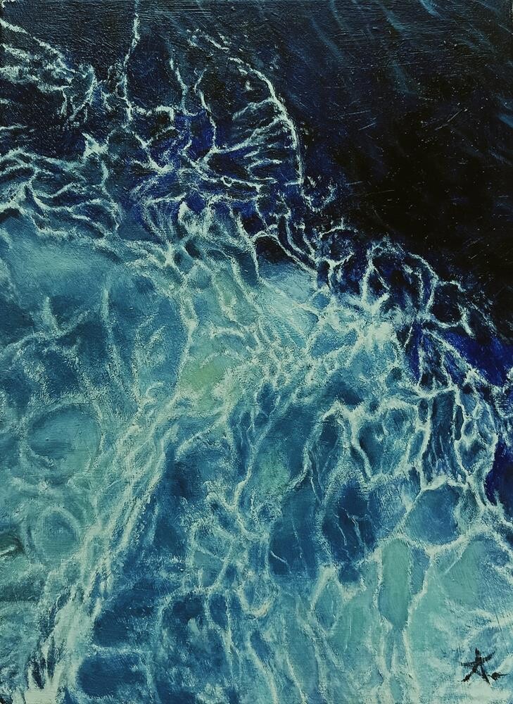 Created for an exhibition about water, it was obvious that I wanted to paint just that, just water as it is in a sea or in an ocean. Thank you and enjoy! Created for an exhibition about water, it was obvious that I wanted to paint just that, just water as it is in a sea or in an ocean. Thank you and enjoy! |
