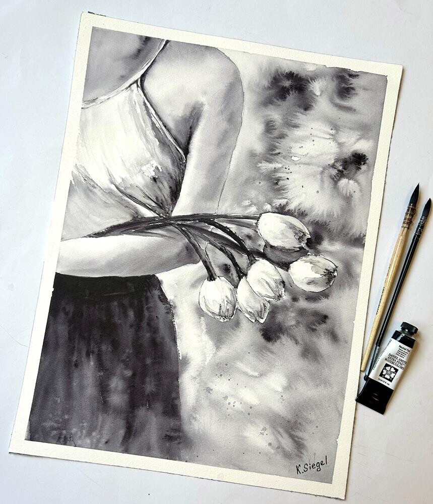 Woman Figure Painting Tulips Art Romantic Art Girl Painting White Tulips Painting Black White Art Monochrome Artwork Woman With Flowers Art Original Watercolor Art Woman Figure Painting Tulips Art Romantic Art Girl Painting White Tulips Painting Black White Art Monochrome Artwork Woman With Flowers Art Original Watercolor Art |