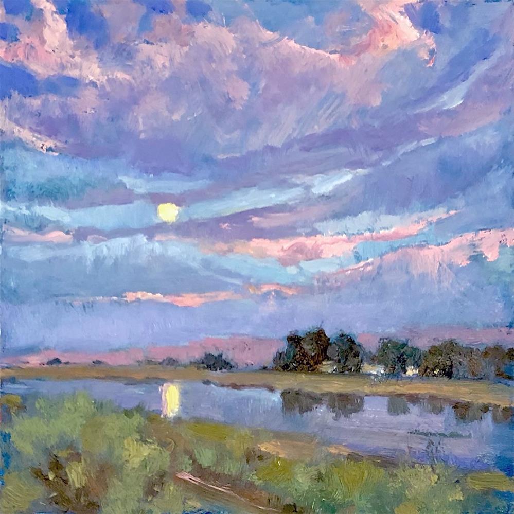I stood along the shoreline of the McNary Wetlands in Burbank, WA as the moon started to rise in the half pink/blue sky. In this quiet evening the myriad tones of blue, intermixed with lavendar and pinks really captured my heartstrings. I stood along the shoreline of the McNary Wetlands in Burbank, WA as the moon started to rise in the half pink/blue sky. In this quiet evening the myriad tones of blue, intermixed with lavendar and pinks really captured my heartstrings. |