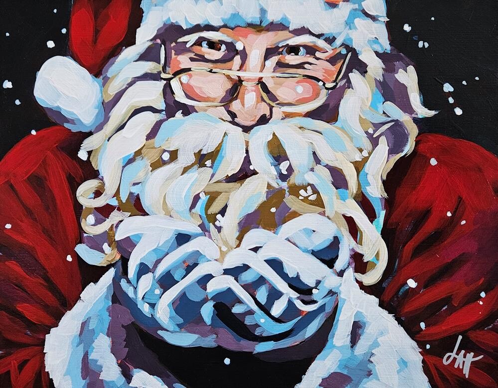 I've been wanting to try more portrait painting, but so far, the only two I've done have both been Santa. If he's watching, I hope he approves! Acrylic paint on a 1.5" wide cradled wood panel. Sides are painted black. Painting and sides are finished with a satin varnish for added protection and an even sheen. Wired and ready to hang! I've been wanting to try more portrait painting, but so far, the only two I've done have both been Santa. If he's watching, I hope he approves! Acrylic paint on a 1.5" wide cradled wood panel. Sides are painted black. Painting and sides are finished with a satin varnish for added protection and an even sheen. Wired and ready to hang! |