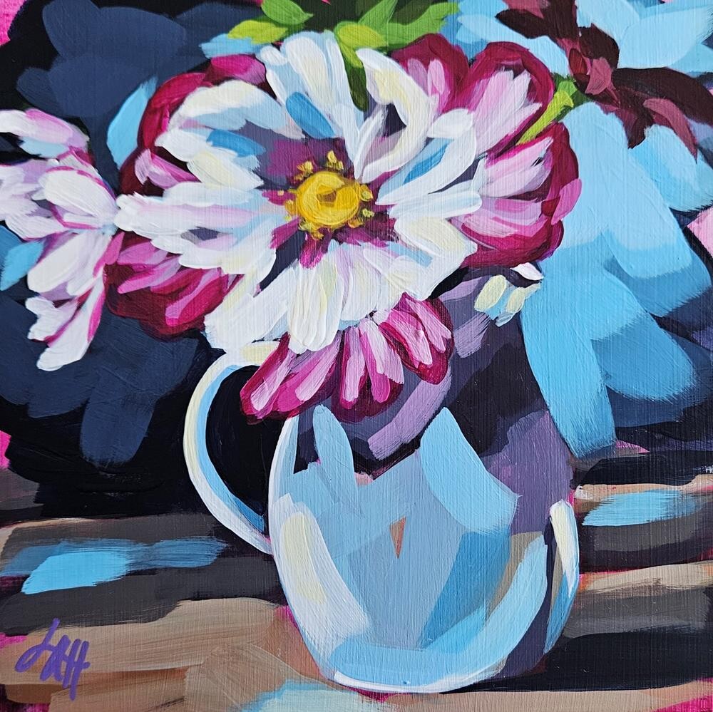 Acrylic paint on a 1.5" wide cradled wood panel. Sides are painted black. Painting and sides are finished with a satin varnish for added protection and an even sheen. Wired and ready to hang! Acrylic paint on a 1.5" wide cradled wood panel. Sides are painted black. Painting and sides are finished with a satin varnish for added protection and an even sheen. Wired and ready to hang! |