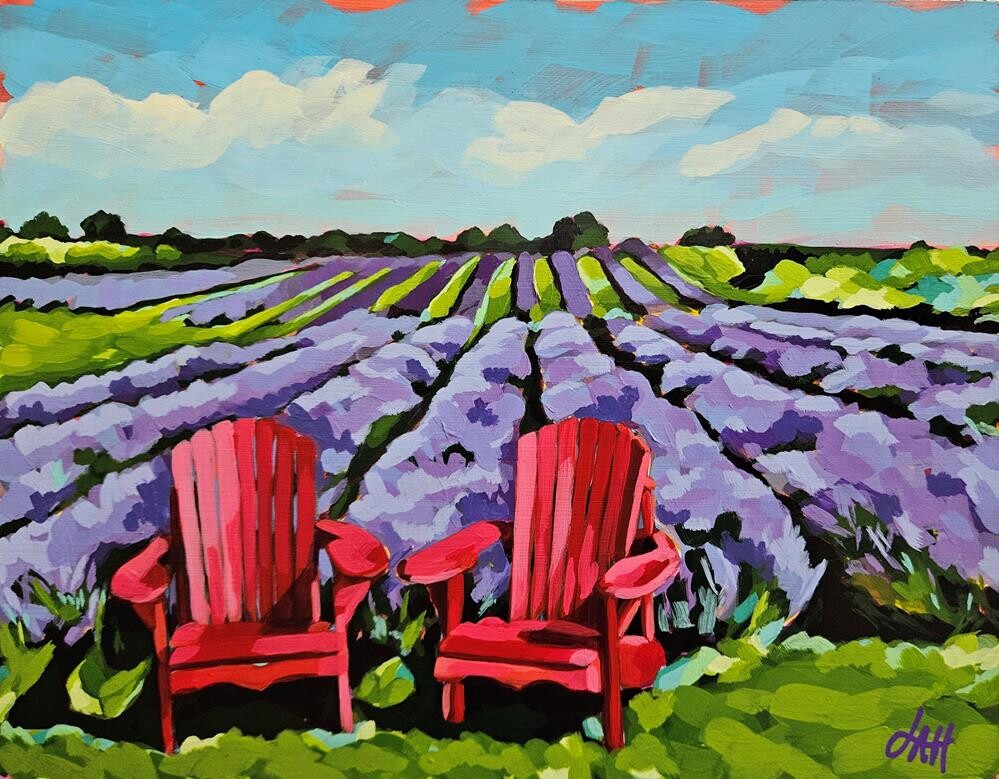 I love, love, love lavender and mentioned when I first shared this painting that I could sit in one of those chairs all day long and enjoy the scent of the lavender fields. A friend suggested I name the painting Lavender All Day and I thought it was perfect! Acrylic paint on a 1.5" wide cradled wood panel. Sides are painted black. Painting and sides are finished with a satin varnish for added protection and an even sheen. Wired and ready to hang! I love, love, love lavender and mentioned when I first shared this painting that I could sit in one of those chairs all day long and enjoy the scent of the lavender fields. A friend suggested I name the painting Lavender All Day and I thought it was perfect! Acrylic paint on a 1.5" wide cradled wood panel. Sides are painted black. Painting and sides are finished with a satin varnish for added protection and an even sheen. Wired and ready to hang! |