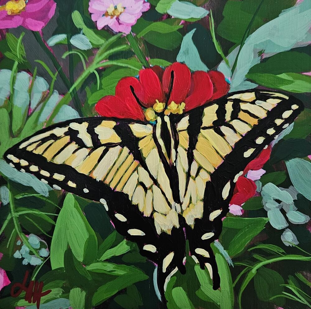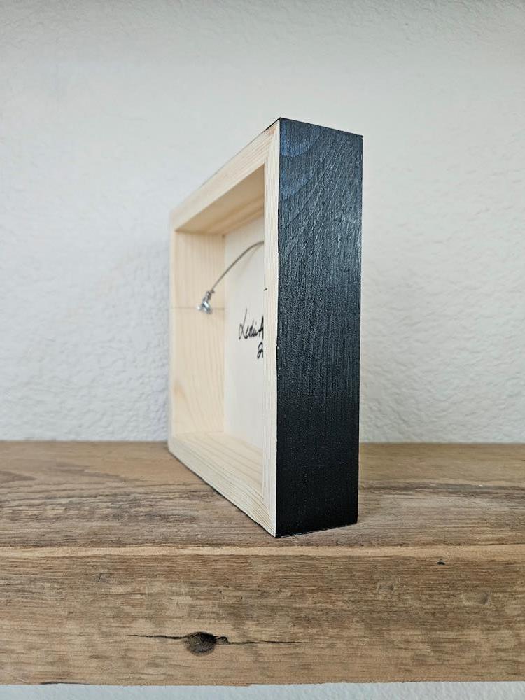 Acrylic paint on a 1.5" wide cradled wood panel. Sides are painted black. Painting and sides are finished with a satin varnish for added protection and an even sheen. Wired and ready to hang. Acrylic paint on a 1.5" wide cradled wood panel. Sides are painted black. Painting and sides are finished with a satin varnish for added protection and an even sheen. Wired and ready to hang. |