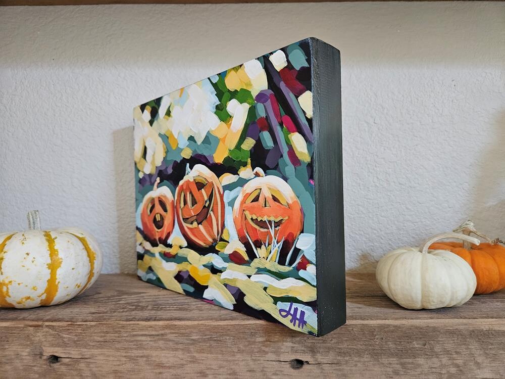 Acrylic paint on a 1.5" wide cradled wood panel. Sides are painted black. Painting and sides are finished with a satin varnish for added protection and an even sheen. Wired and ready to hang! Acrylic paint on a 1.5" wide cradled wood panel. Sides are painted black. Painting and sides are finished with a satin varnish for added protection and an even sheen. Wired and ready to hang! |
