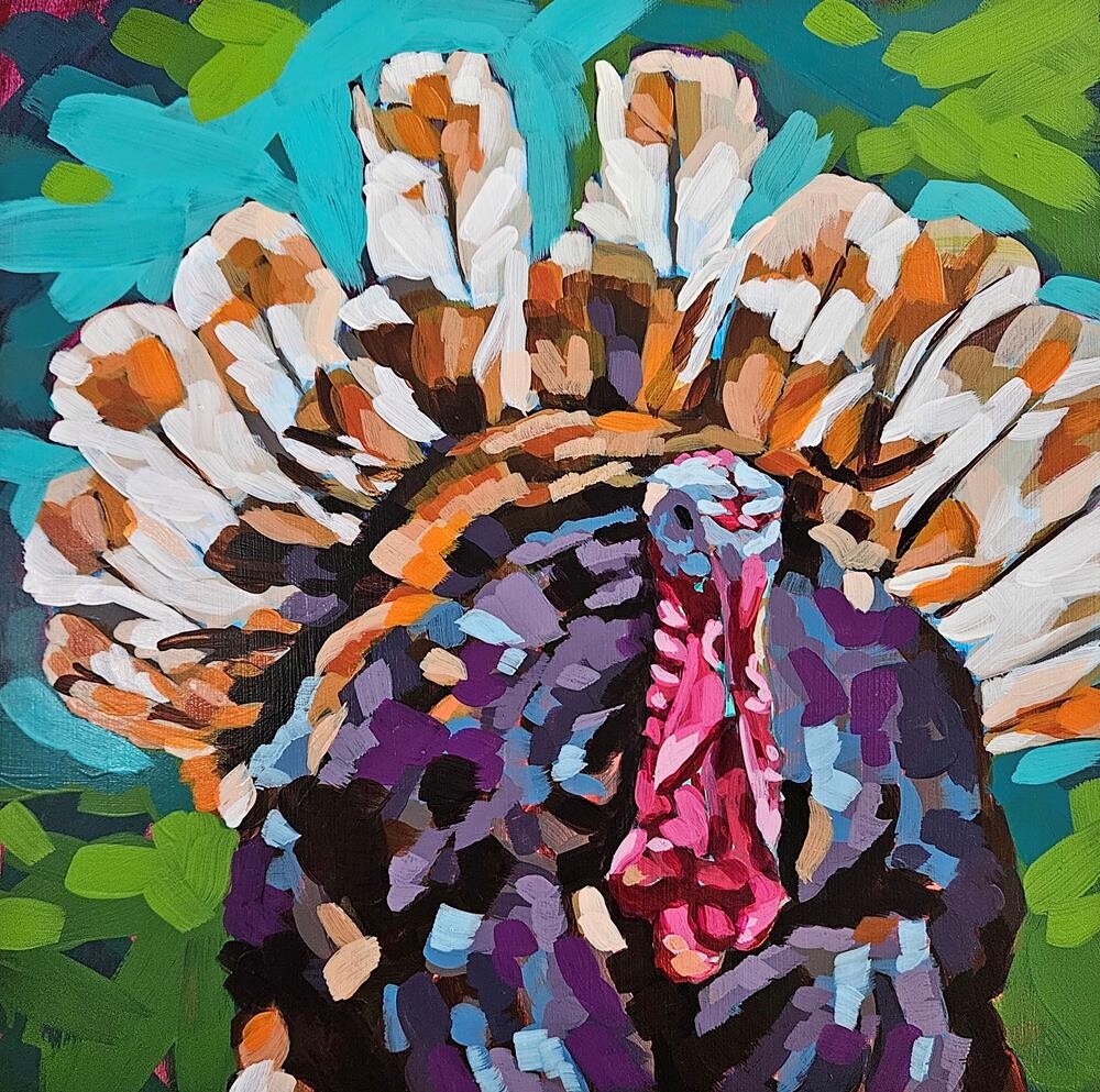 A little Turkey Day tribute. Acrylic paint on a 1.5" wide cradled wood panel. Sides are painted black. Painting and sides are finished with a satin varnish for added protection and an even sheen. Wired and ready to hang! A little Turkey Day tribute. Acrylic paint on a 1.5" wide cradled wood panel. Sides are painted black. Painting and sides are finished with a satin varnish for added protection and an even sheen. Wired and ready to hang! |