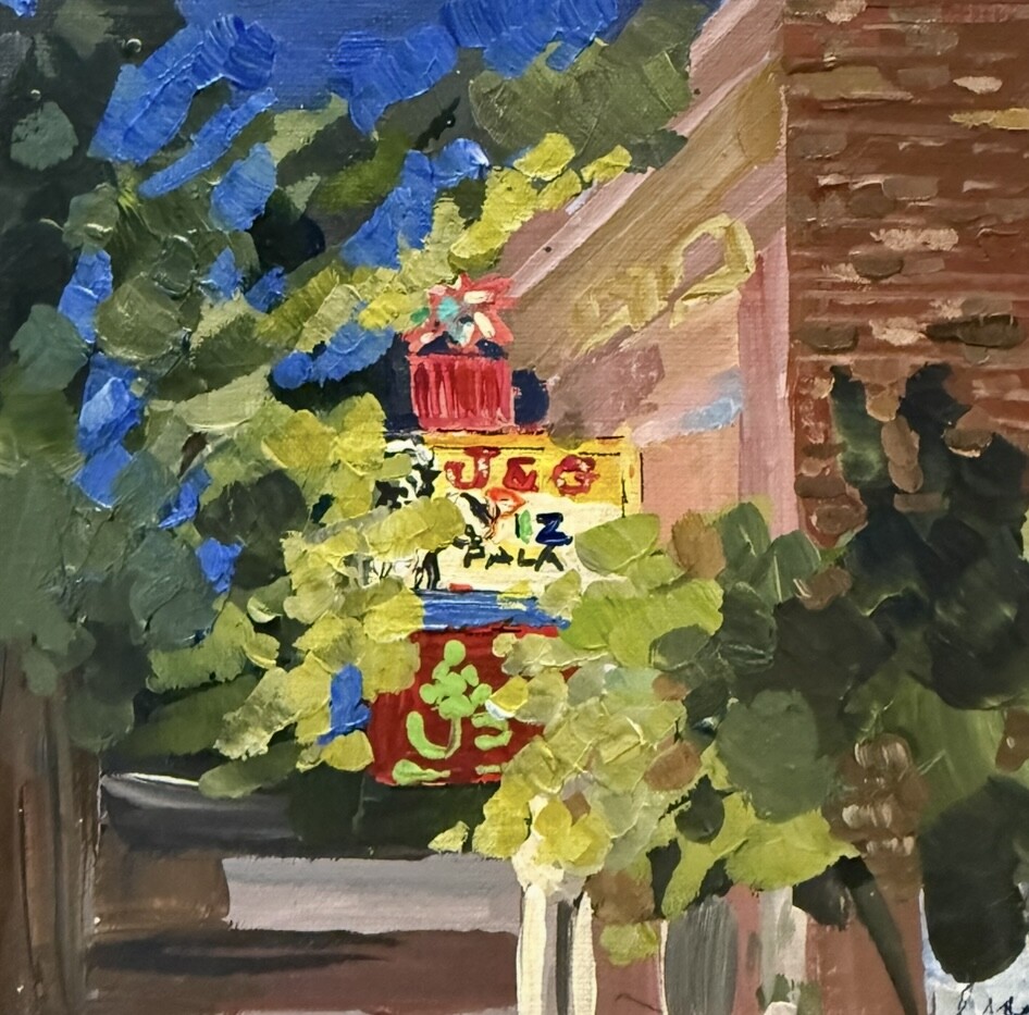 This painting was started during the Plein air festival, but was completed at home. Just a fun nod for the families that know about this little gem. This painting was started during the Plein air festival, but was completed at home. Just a fun nod for the families that know about this little gem. |